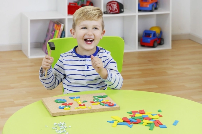 Objevte tvůrčí svět s Lena zatloukací hrou pro děti. Tato hračka podporuje dětskou kreativitu, koncentraci a jemnou motoriku. Díky 72 barevným dílkům v různých tvarech mohou děti tvořit nespočet obrazců podle vlastní představivosti.