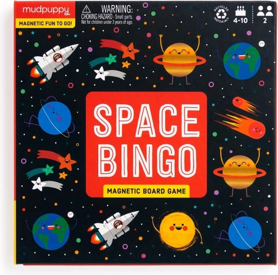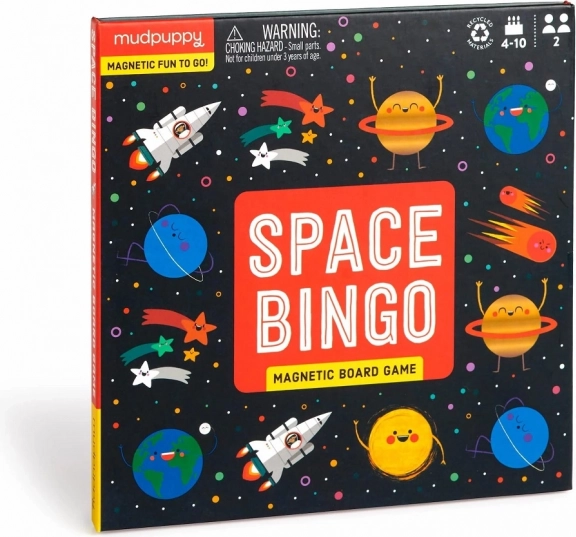 Objevte úžasný svět vesmírných dobrodružství s magnetickou deskovou hrou Mudpuppy Vesmírné bingo. Překrásné kresby planet, raket a komet zdobí herní plán, který je díky svým magnetickým dílkům perfektní pro přenositelnost.