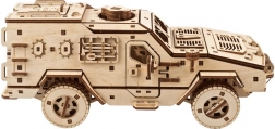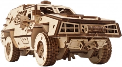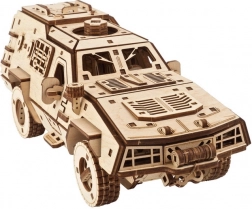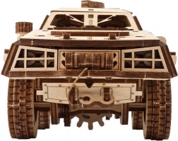 Uchvátí vás kombinace designu a mechaniky: model obrněného vozidla UGEARS Dozor‑B přináší realistické detaily včetně otevíracích dveří, horního i zadního poklopu a detailně zpracovaného interiéru s lavičkami a bezpečnostními pásy. Na přídi najdete pracovní naviják pro samovyprošťování, zatímco pružinový motor, pohon všech kol a celoodpružení se postarají o plynulou jízdu až do vzdálenosti cca 8 metrů.