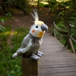 Tato plyšová korela chocholatá ve velikosti 20 cm vyniká ručním zpracováním a velmi věrným vzhledem – od šedého peří přes bílé a oranžové akcenty až po žlutou chocholku. Je příjemná na dotek a skvěle se hodí ke každodennímu mazlení i jako originální dárek.