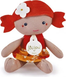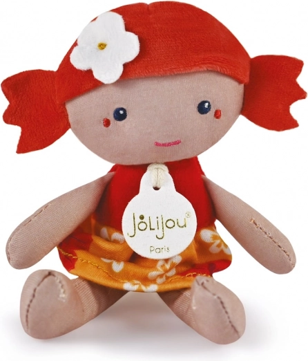 Panenka má příjemný bavlněný obličej, měkké textilní tělíčko a krásný obleček v teplých barvách. Je snadno udržovatelná – lze ji prát při 30 °C a sušit přirozeně nebo při nízké teplotě. Dodává se v otevřené dárkové krabičce, takže je připravena k darování.