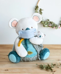 Tato hebká koala Yoca se stane prvním mazlíčkem vašeho miminka. Velká koala něžně drží malé mláďátko a nabízí ukrývanou kapsu, do které snadno uložíte pyžamko či drobnosti na spaní. Hračka je navržena pro pohodlí a bezpečí těch nejmenších.