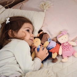 Roztomilá mini panenka od značky DOUDOU s výškou 18 cm má měkké a pružné tělíčko, které je jako stvořené pro mazlení. Díky vyšívaným očím a ústům je bezpečná i pro nejmenší. Jemné materiály šetrné k citlivé pokožce miminek a snadná údržba potěší každého rodiče.