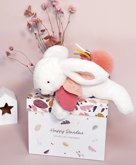 Tato dárková sada s plyšovým králíčkem je ideálním společníkem na každý den – pro klidné usínání, hraní i jako vkusná výzdoba dětského pokoje. Králíček je vyroben z velmi jemných materiálů v harmonii trendy barev a poskytuje miminku uklidňující efekt.