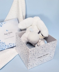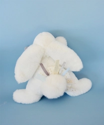Králíček je dodáván v elegantní dárkové krabici, která podtrhuje jeho luxusní charakter. Pro zachování hebkosti doporučujeme prát při teplotě 30°C a sušit přirozeně nebo při nízké teplotě.