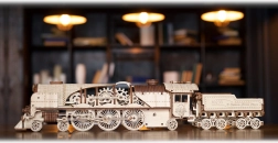 UGEARS V-Express je výjimečná dřevěná stavebnice pro náročné, která propojuje kouzlo klasické železnice s chytrou mechanikou. Odhalený „plášť“ lokomotivy umožňuje sledovat chod převodů, soukolí a klikového mechanismu v akci. Díky natahovacímu motoru se model skutečně rozjede a nabídne realistický zážitek z jízdy včetně volnoběhu a zpátečky.