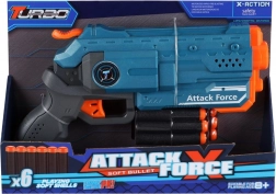 Blaster Turbo Attack Force je ideální volbou pro dynamickou zábavu. Díky dostřelu 8–15 metrů zvládne rychlou a přesnou střelbu, zatímco měkké pěnové náboje s kulatou špičkou zajišťují maximální bezpečnost při hraní.