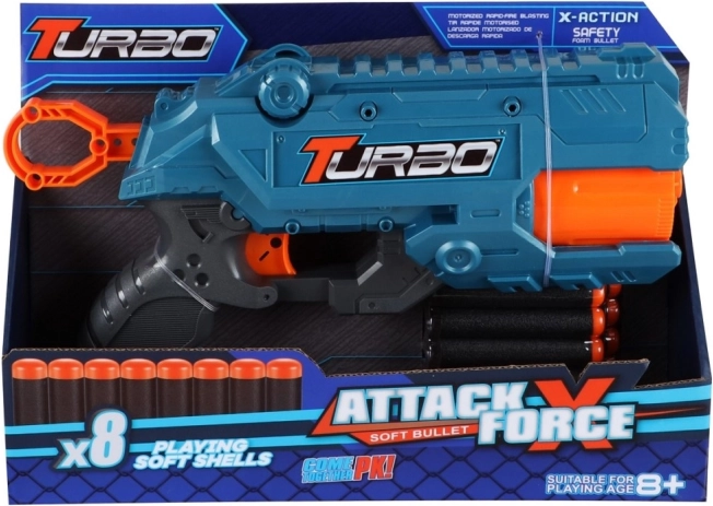 Připravte se na akční zábavu s blasterem Turbo, který nabízí dostřel 8–15 m, vysokou přesnost a bezpečné pěnové náboje. V balení najdete pistoli a 8 ks nábojů s kulatou hlavou, které jsou recyklovatelné a šetrné k životnímu prostředí – ideální pro dlouhé herní souboje doma i venku.