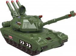 Součástí balení jsou 4 kovově působící plastová autíčka (7 cm) s volnoběžnými koly pro plynulou jízdu. Tank je vybaven 3 kanóny na vystřelovací šipky pro ještě více akce. Napájení zajišťují 3x AA baterie (nejsou součástí balení).