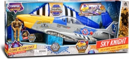 Užijte si akční letecká dobrodružství s modelem The Corps Sky Knight! Tento detailně zpracovaný letoun s délkou 51 cm a rozpětím 46 cm nabízí světelné a zvukové efekty, otevírací kokpit pro 2 figurky a je dodáván s vojákem o výšce 10 cm. Baterie 2× AA jsou součástí balení, takže zábava může začít hned.