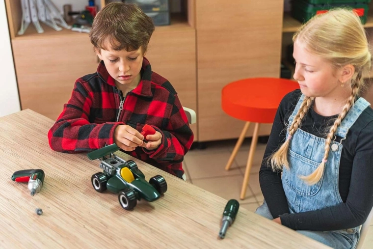 Stavění a rozebírání auta je intuitivní a bezpečné. Děti si procvičí koordinaci oko–ruka, logické myšlení i trpělivost, a zároveň si užijí akční jízdu s hotovým modelem. Díky výměnným dílům (např. spoilery) a samolepkám si každý malý mechanik upraví vůz přesně podle svých představ.