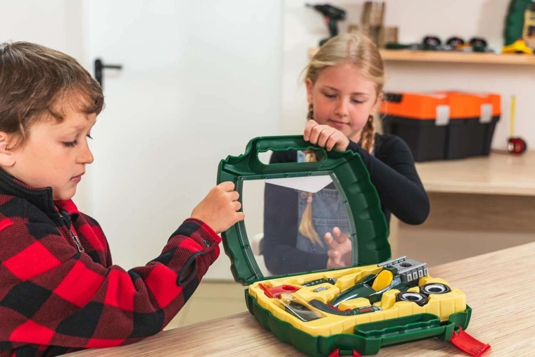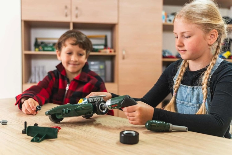 Licencovaný šroubovák s gumovou rukojetí, otočným bitem a zvukovým efektem věrně napodobuje skutečné nářadí. Perfektní pro trénink jemné motoriky a realistickou hru.