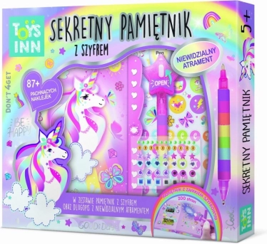 Tento tajný deník s motivem jednorožce je perfektní pro zapisování zážitků, tajemství i kreativních nápadů. Díky číselnému šifrovacímu zámku zůstanou všechny záznamy v bezpečí. Součástí balení je speciální pero s neviditelným inkoustem, jehož text je viditelný pouze pod UV světlem (většinou integrovaným v peru).