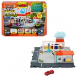 Myčka Matchbox Action Drivers přináší dětem autentický zážitek bez kapky vody. Projeďte autem přes vstup, aktivujte otáčivé mycí válce, zastavte na stanovišti voskování a leštění, kde se automaticky zapojí figurka pracovníka, a poté zajděte do obchodu pro svačinu na cestu. Na konci se postarejte o interiér pomocí pohyblivé hadice vysavače.