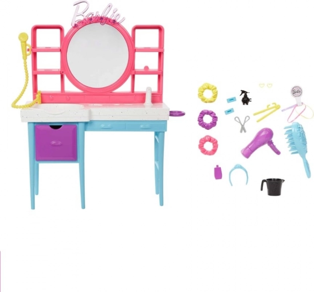 Tento propracovaný set od značky Mattel přináší autentický zážitek z kadeřnického salonu. Panenka BARBIE má dlouhé vlasy s růžovými pramínky, modrou čelenku, stylové šaty a doplňky. Díky přiloženému vybavení mohou děti vytvářet nespočet účesů a objevovat efekty změny barvy vlasů.