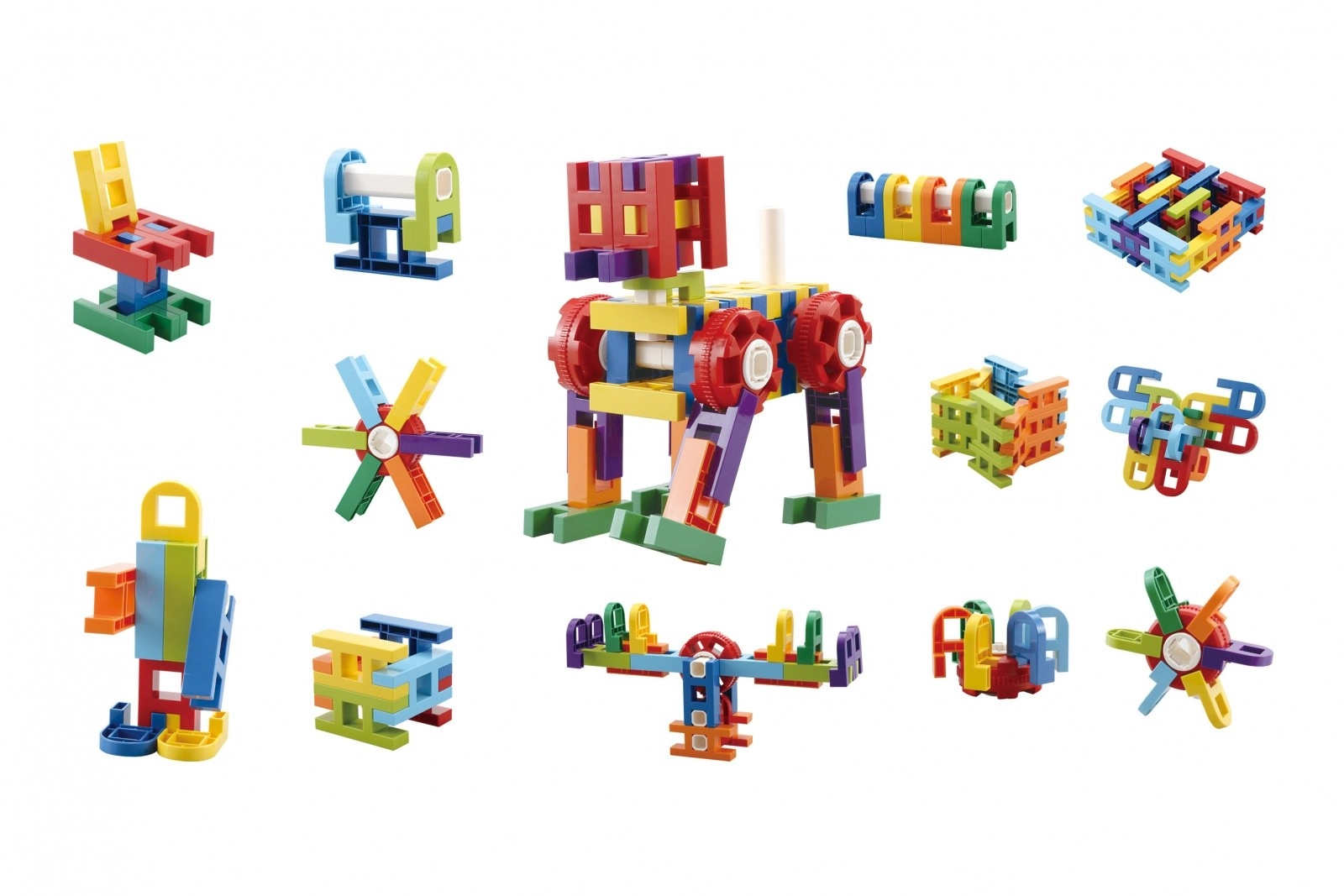 - Všestranné využití – od prvních konstrukcí až po kreativní projekty (židle, pes, vrtulník a další).