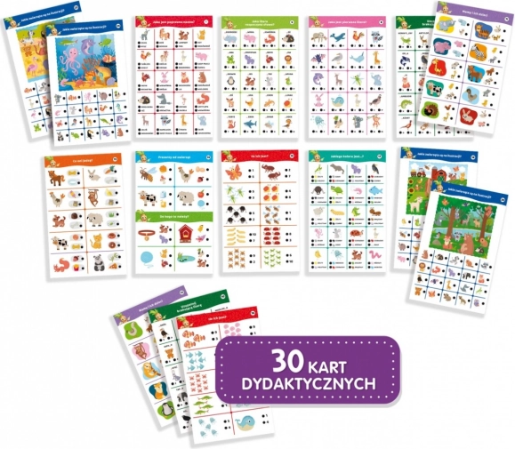 - 30 vzdělávacích karet s otázkami o světě zvířat.