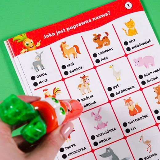 Interaktivní hra Carotina – 500 otázek: Zvířata přináší dětem chytrou kombinaci učení a zábavy. Stačí přiložit hrot tužky na označenou odpověď na kartě a mluvící tužka okamžitě potvrdí správnost. Děti si hravou formou upevní znalosti o zvířatech a zároveň rozvíjejí koncentraci a jemnou motoriku.