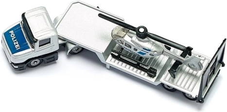 Tato detailně zpracovaná sada kombinuje silniční i letecký svět: podvalník převáží stylovou helikoptéru, což dětem umožňuje vymýšlet napínavé scénáře záchranných akcí i stavby. Díky kovovým dílům a pevným plastovým prvkům je model robustní, stabilní a odolný vůči pádu.