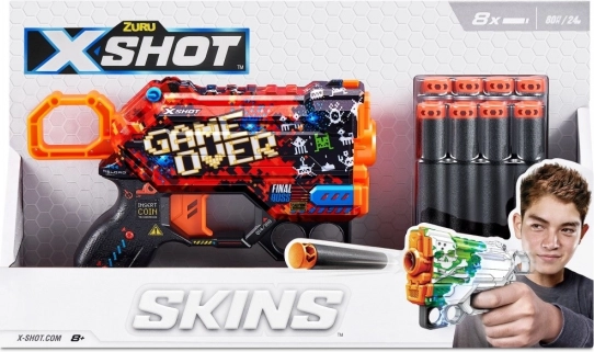 Praktický přední úložný prostor na dvě šipky umožní rychlé dobití v průběhu akce. Kolekce X-Shot Skins nabízí 7 originálních vzorů, takže si snadno vyberete styl, který vám sedí – stejně jako ve vaší oblíbené videohře.