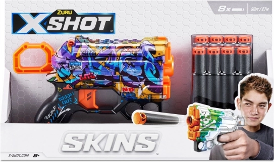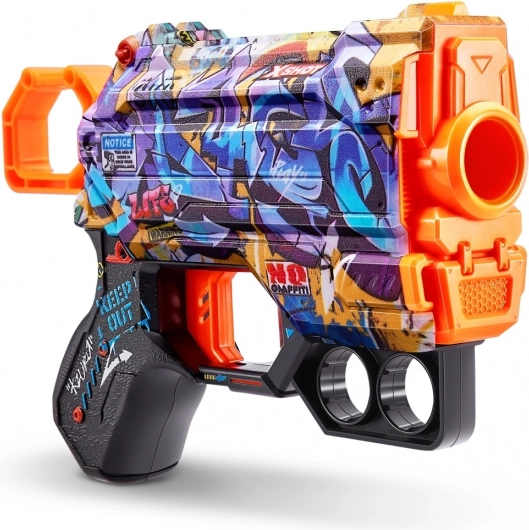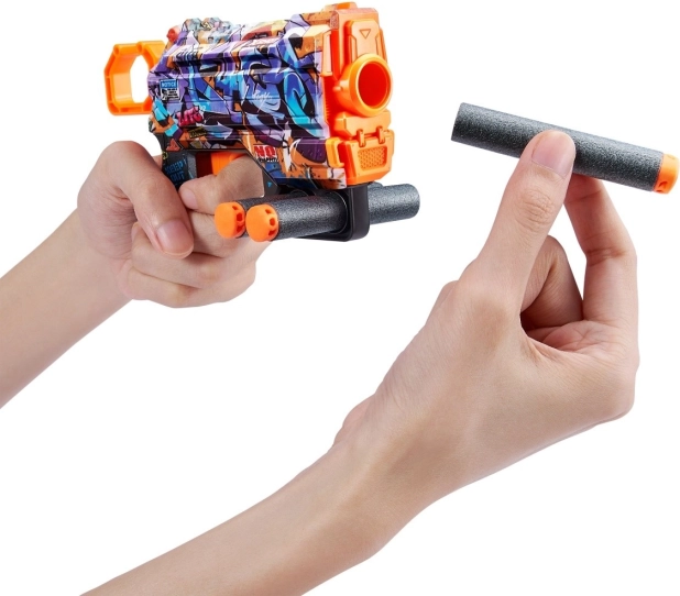 Lehký a svižný blaster X-Shot Skins Menace ve vzoru D přináší rychlou akci a styl. Střílí pěnové šipky až do 27 metrů, má přední rychlý zásobník na náhradní střely a nabízí unikátní graffiti design pro maximální zábavu a přehlednost v boji.
