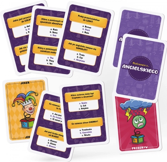 Zábavná vzdělávací karetní hra pro děti od 6 let, která pomáhá rozvíjet znalosti anglického jazyka. Hrají 2–4 hráči, partie trvá přibližně 20 minut. Cílem je správně odpovídat na otázky a nasbírat 5 karet jako první. Jednoduchá pravidla vycházejí z osnov základní školy, takže hra je zábavná i edukativní a ideální na cesty díky kompaktním rozměrům.