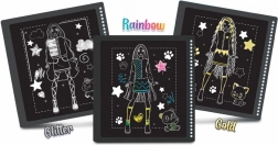 Objevte kouzlo barev s Barbie v rozkošném stylu. Pomocí přiloženého pera setřete černou vrstvu papíru a objevíte živé barvy duhy v fantastických odstínech.