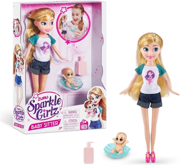Připojte se k magickému světu imaginativní hry se Zuru Sparkle Girlz baby sitter panenkou. Tato okouzlující panenka je připravena k akci se svými dlouhými blond vlasy a stylovým outfitem. V balení najdete také malé miminko a láhev, což umožňuje hrát různé scénáře babysittingu. Cílem je rozvíjet kreativitu a pečovatelské dovednosti dítěte.