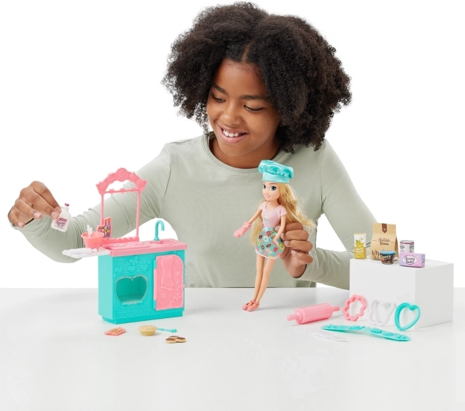 Obsahuje vše potřebné pro komplexní hru na pečení, včetně panenky, hraček potravin a kuchyňských doplňků.