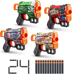 X-SHOT Skins přenáší svět herní personalizace do reality. Tato výhodná sada Menace 4 Pack nabízí čtyři kompaktní blástry v jedinečných designech, se kterými zazáříte v každé bitvě. Díky lehké konstrukci, jistému úchopu a rychlému přebíjení jsou ideální do ruky pro děti i hravé souboje s kamarády.