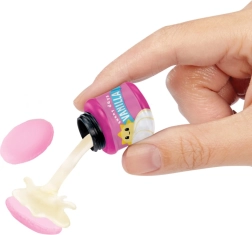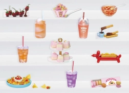 Každé balení obsahuje mini ingredience a náčiní k výrobě realistických dezertů a snacků. Podle karty receptu vše složíte a na UV světle vytvrdíte do sběratelské podoby.
