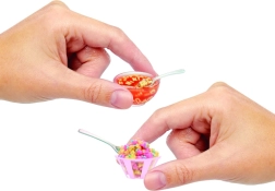 Mini misky, lžičky, kelímky i „omáčky“ dodají vašim výtvorům autentický vzhled. Ideální pro vystavení, fotografování a výměnu mezi sběrateli.