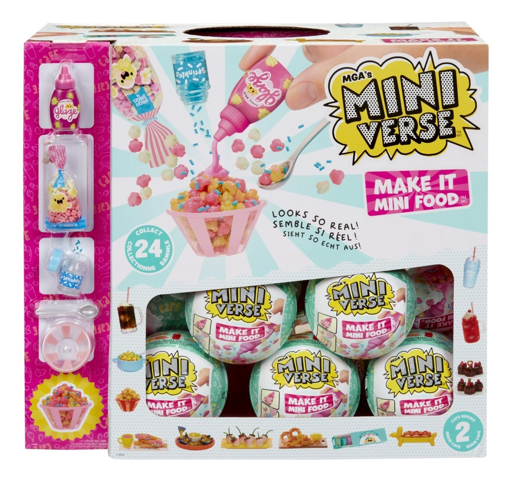 Zábava, kreativita a sběratelská vášeň v jednom: Make It Mini Food Café přináší hyperrealistické mini jídlo, které si sami „připravíte“ – od makronek přes zmrzlinu až po nachos. Každá koule ukrývá různé mini suroviny, obaly a náčiní, které dohromady tvoří nápadité sety s věrohodnými detaily.