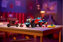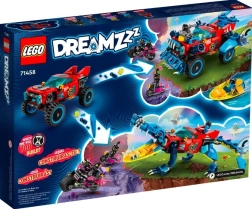 LEGO DREAMZzz Krokodýlí auto (71458) inspirované televizním seriálem umožňuje dětem tvořit úžasné stavby a zároveň se ponořit do dobrodružství. Děti mohou zažít zábavu s budováním díky možnosti sestavit vozidlo dvěma různými způsoby, ať už jako krokodýlí auto s pohyblivými končetinami a vystřelovačem disků, nebo terénní vozidlo s rotujícími koly a odnímatelnou střechou.