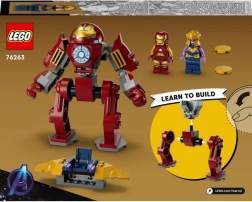 Založený na filmu Marvel Avengers: Infinity War, tento set obsahuje superhrdinu Iron Mana s jeho Hulkbuster robotem a padoucha Thanose s jeho vozidlem. Mecha Hulkbuster je plně polohovatelný a obsahuje místo pro minifigurku Iron Mana. Thanosovo vozidlo je vybaveno diskovým vrhačem a sedadlem pro jeho minifigurku. Použitelné stavební bloky a příběhový návod v sadě pomáhají dětem snadno stavět a okamžitě si hrát. Intuitivní aplikace LEGO Builder umožňuje dětem prohlížet modely ve 3D a sledovat své pokroky.