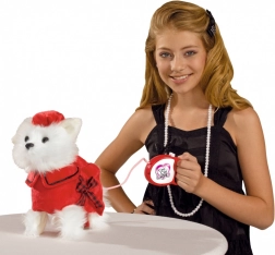 Interaktivní plyšový West Highland teriér CHI CHI LOVE Poshi je stvořený pro malé milovníky zvířat. Stylový červený outfit s mašlí dodává pejskovi šmrnc a ergonomická rukojeť vodítka zajišťuje pohodlné vedení. Díky propojení kabelem pejsek spolehlivě reaguje na pokyny – zvládá chůzi, štěkání i vrtění ocáskem.