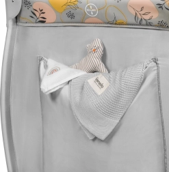 Postýlka slouží také jako ohrádka s uzavíratelným vstupem a praktickou boční kapsou pro ukládání hraček.