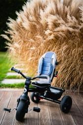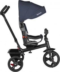 Univerzální dětská tříkolka LIONELO Haari Jeans roste s dítětem od cca 18 měsíců do 5 let (do 25 kg). Nabízí otočné sedadlo 360°, rodičovské ovládání s nastavitelnou rukojetí, skládací stříšku proti slunci a dešti a bezúdržbová PU kola s výbornou přilnavostí. Pro bezpečí nechybí 3bodové pásy, odnímatelné madlo a parkovací brzda.