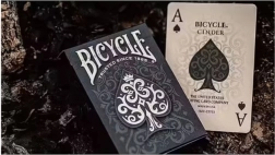 Tato stylová edice karet Bicycle Cinder přináší prémiový vzhled i pocit v ruce. Tlumené popelavé odstíny šedi kontrastují s lesky stříbrné fólie, zatímco dvouúrovňové ražení vytváří působivý 3D efekt. Teplé zlaté tónování figur symbolizuje rozžhavené uhlíky, z nichž se vznáší dým – motiv, který setu dodává jedinečnou atmosféru.