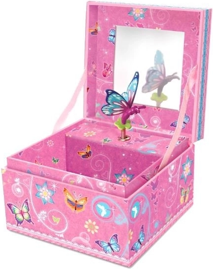 Klasická hrací skříňka s motivem motýlků. Otevřete ji, a figurka se začne točit za doprovodu klasické melodie. Když melodie skončí, stačí ji znovu natáhnout. Skříňka obsahuje také zrcátko a prostor pro uložení drobností.