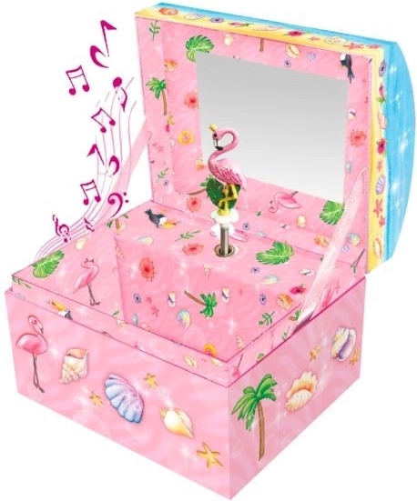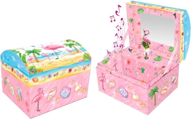 Hrací skříňka Pecoware s motivem plameňáka přináší klasickou melodii, kterou oživíte jednoduchým otočením a odkrývá úložný prostor pro malé poklady.