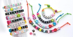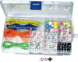 - Korálky a dílky na náramky, abecední sady (černobílá, bílé písmo na černém podkladu, barevná), návod, organizér/valisečka