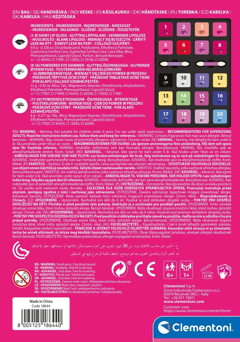 Stylová dětská kosmetická paletka ve tvaru kabelky pro malé milovnice líčení. Obsahuje oční stíny, lesk na rty a 2 štětečky pro snadné vytváření každodenního i slavnostního make-upu. Podporuje kreativitu a jemnou motoriku.