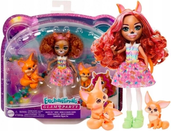 Objevte svět plný dobrodružství s Filigree Fox a její liščí rodinkou. Tato kouzelná sada z kolekce Glam Party je skvělou volbou pro děti, které si oblíbily tyto roztomilé panenky a jejich mazlíčky. Set obsahuje panenku s rudými vlasy a růžovými melíry, s pohyblivými končetinami a barevným oblečením, včetně topu, sukně a zelených bot.
