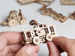 Objevte zábavnou sadu mini modelů z dřevěné překližky od značky UGEARS – traktor, formule, tahač a tramvaj. Každý přívěšek skrývá jednoduchý mechanický mechanismus, který zpříjemní čekání a uleví od napětí. Všechny hračky mají poutko k zavěšení na klíče či batoh a sestavíte je snadno podle detailního návodu.