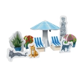 Propojte více sad BRICK TRICK a rozšiřujte svou krajinu o plážová posezení, figurky i další domky – ideální pro kreativní hru a vystavení.