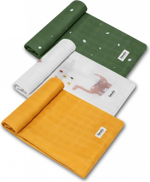 Sada LIONELO Dino přináší tři jemné pleny ze 100% bambusové tkaniny, které vynikají mimořádnou hebkostí a prodyšností. Díky přírodním vlastnostem bambusu poskytují miminku pohodlí v každém ročním období a jsou šetrné i k citlivé pokožce novorozenců.