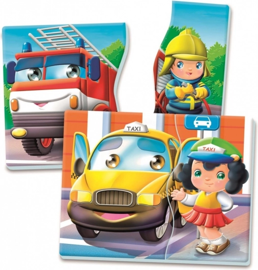 Skládačka vozidla a povolání je ideální první puzzle pro předškoláky. Každé téma tvoří jednoduché dvoudílné spojení – děti přiřazují správné vozidlo k odpovídajícímu povolání. Hra podporuje soustředění a přináší radost z úspěšného složení.