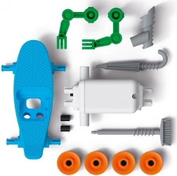 - motor s převodovkou a bateriovým modulem, části robota, barevné nálepky, návod