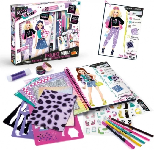 Sada Projekt Móda Portfolio je ideální pro všechny milovnice módy, které chtějí rozvíjet svou kreativitu od inspirace až po finální návrh. Vše potřebné máte na jednom místě – od vzorníků látek po kvalitní doplňky.